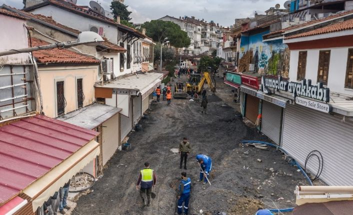 Kuşadası’nın turistik çarşılarında yenileme çalışmaları sürüyor
