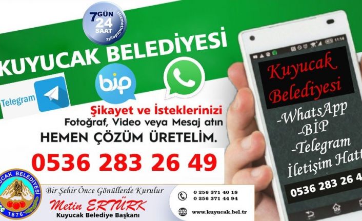 Kuyucak Belediyesi, vatandaşların istek, öneri ve şikayetlerini iletebileceği sosyal medya ağını genişleterek WhatsApp, Telegram ve BİP uygulamasına katıldı.