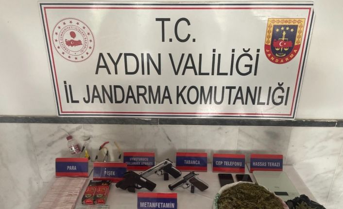 Aydın İl Jandarma Komutanlığı KOM Şube Müdürlüğü ve Kuyucak İlçe Jandarma Komutanlığı ekiplerince uyuşturucu madde imal ve ticaretine yönelik çalışma gerçekleştirildi. Kuyucak ilçesinde A.Ç. ve Ş.T. isimli şüphelilerin ikametinde ve eklentilerinde yapılan aramada, 3 bin 150 gram kubar esrar, 1820 gram metamfetamin, 3 adet 9 mm tabanca, 150 adet 9 mm fişek, 1 adet hassas terazi 57 bin 320 TL suçtan elde edildiği değerlendirilen para, 5 adet uyuşturucu kullanma aparatı, 2 adet cep telefonu ele geçirildi. Şüpheli şahıslar işlemlerinin ardından çıkarıldıkları adli makamlarca tutuklanmalarına müteakip Ceza İnfaz Kurumu’na teslim edildi.