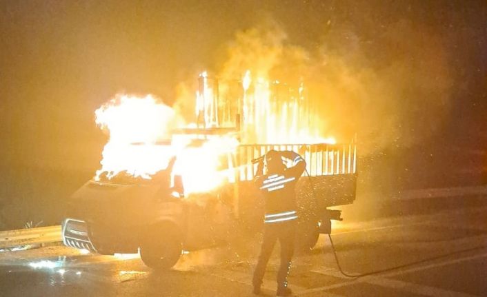 Olay, Kuşadası Söke yolu üzerinde meydana geldi. Edinilen bilgiye göre Söke istikametine giden pencere malzemeleri yüklü bir kamyonet, seyir halindeyken birden yanmaya başladı. Yangını fark eden araç sürücüsü, aracını yolun sağına çekerek durumu 112 Acil Çağrı Merkezi’ne bildirdi. Motor bölümünde başlayan yangın kısa sürede kamyoneti sardı. İhbar üzerine bölgeye Aydın Büyükşehir Belediyesi İtfaiye Daire Başkanlığı ekipleri sevk edildi. Kısa sürede bölgeye gelen itfaiye ekipleri, alev topuna dönen aracı söndürmek için yoğun çaba sarf etti. Ekiplerin müdahalesi ile alevler söndürülürken, yangında kamyonet kullanılmaz hale geldi. Kamyonet içerisinde bulunan şoför ve yolcu konumundaki vatandaşlar şans eseri yara almazken, olay ile ilgili inceleme başlatıldı.