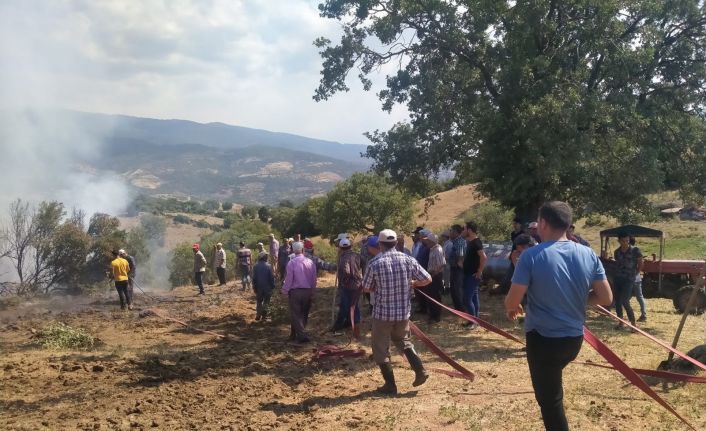 Aydın’ın Yenipazar ilçesinde çıkan yangını söndürmek için camiden yapılan anonsu duyan mahalleli kazma kürek söndürme çalışmalarına koştu.