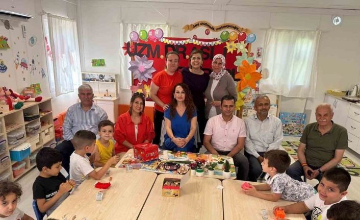 Etkinlik sonunda Efeler İlçe Milli Eğitim Müdürlüğü Şube Müdürü İsa Ülker, Okul Müdürü İsmail Yiğit, Müdür Yardımcısı Esra Zeren ve anasınıfı öğretmenleri, uzman doktor Aslı Demirkol’a çiçek takdiminde bulundu. Minikler de yapmış oldukları buzdolabı magnetlerini hediye etti.