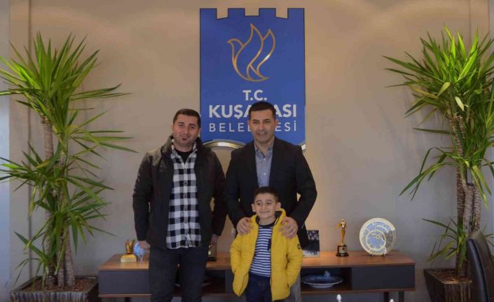 Aydın’ın Kuşadası ilçesi İkiçeşmelik Mahallesi’nde yaşayan 8 yaşındaki Resul Çelik, Kuşadası Belediyesi tarafından bölgeye çocuklar için yapılan yatırımlara teşekkür etmek için Başkan Ömer Günel’i makamında ziyaret etti. Derslerinde çok başarılı olan minik Resul’e çeşitli hediyeler veren Başkan Ömer Günel, “Kuşadası’nda her şeyi çocuklarımıza daha güzel bir gelecek sağlamak için yapıyoruz” dedi.