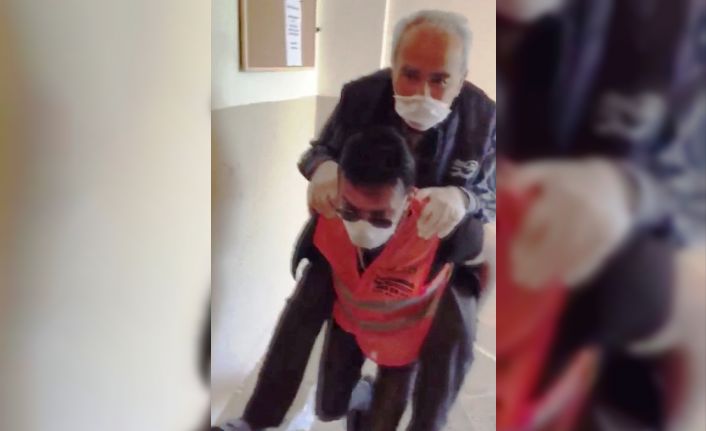Aydın’ın Efeler ilçesinde hastanede tedavisi tamamlanan yaşlı adamı Vefa Sosyal Destek Gurubu personeli evine kadar sırtında taşıdı.