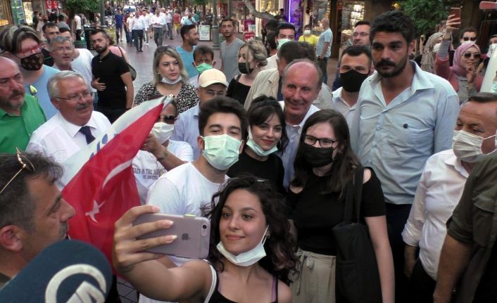 Partililer tarafından Nazilli İstasyon Meydanı’nda karşılanan Memleket Partisi Genel Başkanı Muharrem İnce, parti otobüsünün kapısından partililerine seslendi. Kısa bir konuşmanın ardından ara sokaklardan yürüyerek Uzun Çarşı’ya giren İnce, vatandaşlarla sohbet ederek bol bol selfie çektirdi. Yürüyerek Belediye Meydanına geçen Muharrem İnce burada partilerine geçen 5 kişiye rozet taktı. Halkı selamlayarak Aydın’a hareket eden İnce’ye vatandaşlar el sallayarak karşılık verdi.