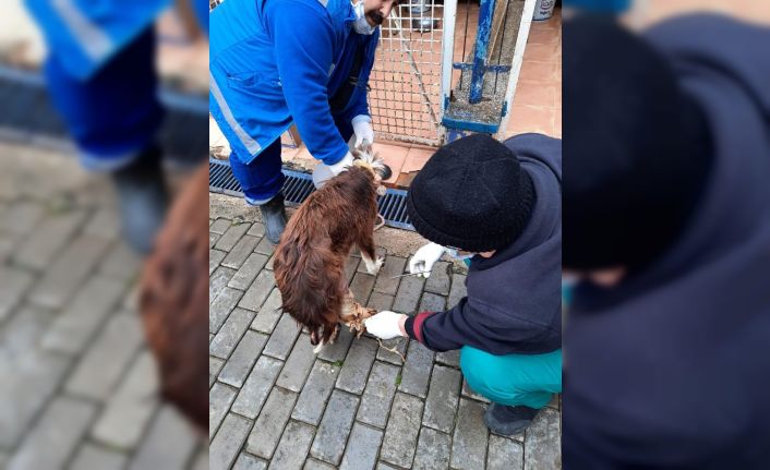 Aydın’ın Efeler ilçesinde araba çarpması sonucu yaralandığı tahmin edilen sokak köpeğini muhtarın dikkati kurtardı.