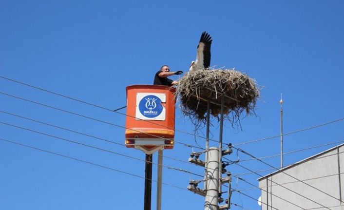 Nazilli Belediyesi Kültür ve Sosyal İşler Müdürlüğü ekipleri ve Nazilli Hayvan Severler Topluluğu’na gelen ihbar üzerine Sümer Rekreasyon Alanı’nda bulunan yaralı leylek veteriner kliniğine götürülerek tedavi altına alındı.
