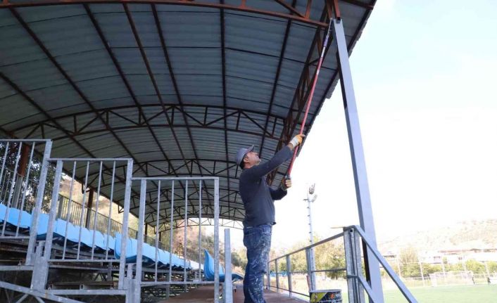 Nazilli Belediyesi ekipleri, İsabeyli Sentetik Futbol Sahası’nı yeni sezon öncesi bakıma aldı. Çevre temizliği, Nazilli Belediyesi ekipleri tarafından yapılan sahanın koruma ve ışıklandırma demirleri, kale ağları, yedek kulübeleri ve taraftar tribünleri tek tek kontrol edilerek boyama çalışmaları gerçekleştirildi.