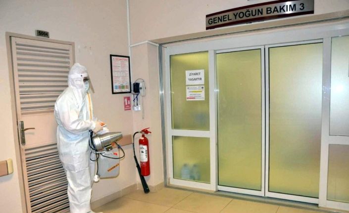 Nazilli Devlet Hastanesi bünyesinde oluşturulan özel dezenfekten ekipleri tarafından belirli saatler içerisinde hastanenin değişik bölümlerinde dezenfekte faaliyetleri hızla gerçekleştiriliyor.