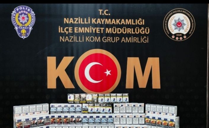 Edinilen bilgiye göre, Nazilli’ye doğu illerinden yüklü miktarda kaçak sigara getireceği bilgisini alan KOM Grup Amirliği ekipleri R.B. isimli şahsı takibe alarak şüphelinin evine operasyon düzenledi. Evde yapılan aramada 440 paket kaçak sigara ele geçirildi. Aynı zamanda eş zamanlı yapılan ikinci operasyonda ise kaçak tütün satışı yapan A.K isimli şahıs işyerinde yakalandı. İşyerinde yapılan aramada da içi tütün doldurulmuş 6 bin adet makaron ve kaçak nargile tütünü ele geçirildi.
