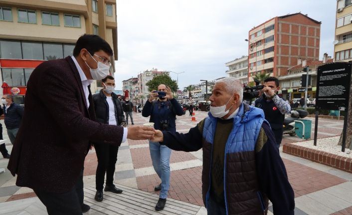 Nazilli Belediye Başkanı Kürşat Engin Özcan; Miraç Kandili dolayısıyla Osmanlı Çeşmesi’nden akıtılan 5 bin kişilik şerbeti vatandaşlara ikram etti.