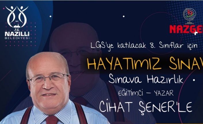Nazilli Belediyesi ve NAZGEM işbirliğiyle 30 Mayıs Pazartesi günü saat 16.00’da Mehmet Yüzügüler Kültür Merkezi Tiyatro Salonu’nda Eğitimci Yazar Cihat Şener’in sunumuyla ‘Hayatımız Sınav’ isimli konferans verilecek.