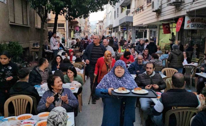 Aydın’ın Nazilli ilçesinde ilçenin en renkli sokakları arasında yer alan Kuaförler Sokağı’nda iftar sofrası bir kez daha kuruldu.