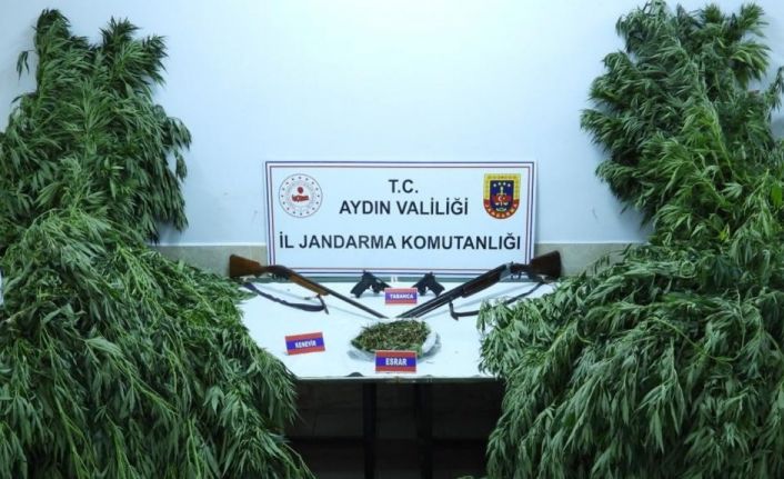 Edinilen bilgiye göre, Aydın İl Jandarma Komutanlığı Kaçakçılık ve Organize Şube Müdürlüğünce uyuşturucu madde ticareti ve kullanımının önlenmesine yönelik çalışma başlatıldı. Çalışmalarda Nazilli ilçesinde 4 şahsa yönelik olarak adli makamlardan alınan arama kararına istinaden ev ve eklentilerinde arama yapılırken 4 şahıs gözaltına alındı. Yapılan aramalarda 515 kök kenevir bitkisi, 1052 gram kubar esrar, 2 adet gaz ve ses tabancası, 2 yivsiz av tüfeği ele geçirildi. Şüphelilerin adli işlemlerinin devam ettiği öğrenildi.