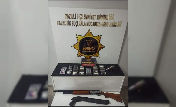 Aydın’ın Nazilli ilçesinde polis ekipleri tarafından gerçekleştirilen operasyon kapsamında bir miktar uyuşturucu madde, 1 adet hassas terazi, 1 adet ruhsatsız tabanca, tabancaya ait şarjör ve mermi, 2 adet ruhsatsız tüfek ve tüfeklere ait 10 adet kartuş ele geçirilirken gözaltına alınan 2 şahıs tutuklanarak cezaevine gönderildi.
