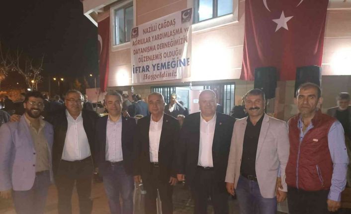Nazilli merkez Yıldıztepe Mahallesi Muammer Hastepe Caddesi üzerinde bulunan dernek binası önünde buluşan ilçede yaşayan Ağrılılar, dayanışma ve kaynaşma iftarı ile büyük coşku yaşadı. Uzaktan ve yakından gelen Ağrılı hemşerilerine ev sahipliği yapan Çağdaş Ağrılılar Yardımlaşma ve Dayanışma Derneği ve Nazilli manavlar ve pazarcılar Odası başkanı Necmettin Karakaya ile dernek yönetim kurulu üyeleri, konukları ile tek tek ilgilendi. Oldukça samimi bir ortamda ve kalabalığa rağmen iftar anında bile herkesin rahatlıkla iftarı açtığı iftar buluşmasında titizlik dikkatlerden kaçmadı. Siyasi partilerin Aydın il ve Nazilli ilçe başkanları, yöneticileri ve üyelerinin yanısıra daire müdürleri, muhtarlar, oda başkanları, okul müdürleri ve davetliler organizasyondan duydukları memnuniyeti dile getirdi.