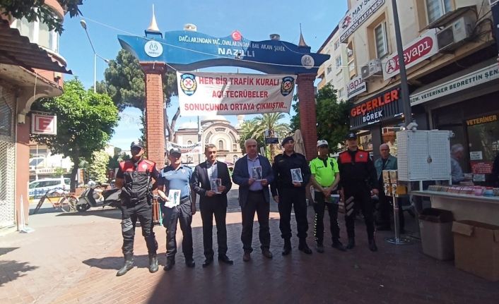 Aydın’ın Nazilli ilçesinde Karayolu Trafik Haftası etkinliklerinde “Yayalar İçin 5 Adımda Güvenli Trafik” sloganı ile yayalara ve sürücülere broşür dağıtılarak bilgilendirme yapıldı.
