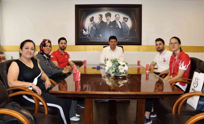 Türkiye Taekwondo Şampiyonu 14 yaşındaki Elifnaz Köseoğlu, Belediye Başkanı Kürşat Engin Özcan’ı makamında ziyaret etti.