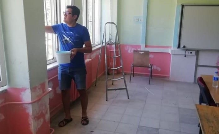 Aydın’ın Köşk ilçesinde okulları yeni döneme hazırlayan öğretmenler okullarda boya ve badana işlemleri için kolları sıvadı.