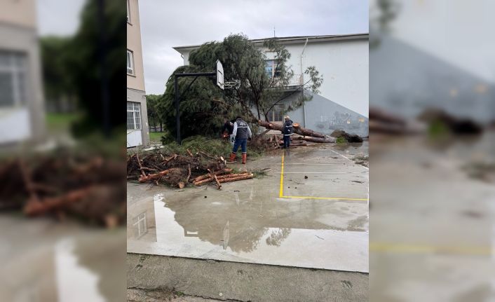 Aydın’ın Koçarlı ilçesine bağlı Bıyıklı Mahallesi’nde etkili olan şiddetli fırtına okul bahçesindeki yaklaşık 50 yıllık 5 çam ağacını kökünden söktü. Gece saatlerinde yaşanan olayda öğrencilerin okulda olmaması faciayı önlerken, sabah saatlerinde Koçarlı Belediyesi ekipleri devrilen ağaçları kaldırmak için çalışma başlattı.