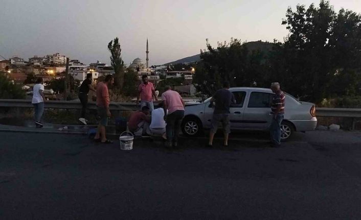 Söke Kuşadası otoyolu Fevzipaşa Mahallesi mevkiinde seyir halinde aniden kilitlenen otomobil önce kazadan, sonra yanmaktan kurtuldu.