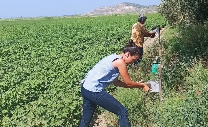 Aydın’ın Didim ilçesinde beyaz altın olarak bilinen pamuğun zararlılardan korunması amacıyla tarlalara asılan monitör tuzakların haftalık kontrolü gerçekleştirilirken, bazı bölgelerde pamukta dökülmeye sebep olan çizgili yaprak kurdu ve yeşilkurt zararlıları tespit edildi.
