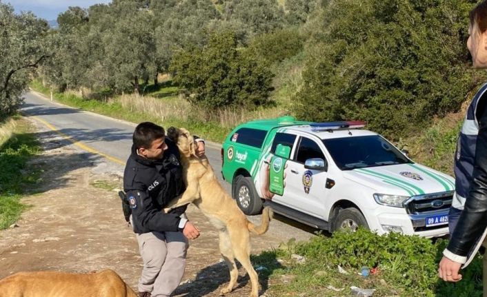 Aydın’da polis ekipleri soğuk havalarda yiyecek bulmakta zorlanan sokak hayvanlarına mama desteğinde bulundu.