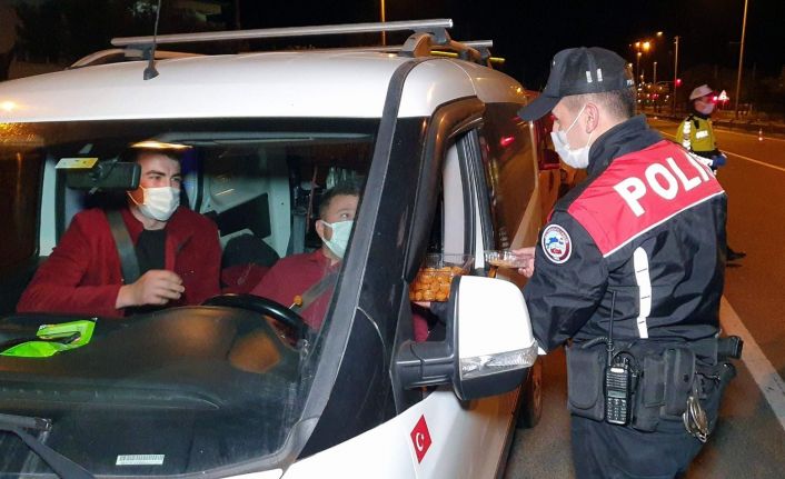 Aydın’ın Nazilli ilçesinde polis ekipleri Denizli-Aydın Karayolu üzerinde denetleme yaptı. İzin belgesi, evrak ve alkol denetiminin ardından sürücülerle yolcuların Ramazan ayını kutlayan ekipler tatlı ikramında bulundu.