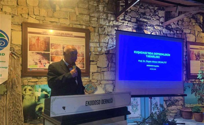 Ekosistemi Koruma ve Doğa Sevenler Derneği’nin (EKODOSD) haftalık söyleşi programlarında bu hafta, Kuşadası’nda depremlerin yararları konuşuldu. Söyleşilerinin bu haftaki konuğu olan Jeofizik Yüksek Mühendisi Prof. Dr. Övgün Ahmet Ercan “Kuşadası’nda Depremlerin Yararları” konulu bir sunum gerçekleştirdi. Dünyanın katmanları, dalma batma kuşağı türleri, Afrika, Arap ve Avrasya plakalarının Anadolu’ya etkileri, Batı Anadolu’nun avkulanması, kırılmayla depremin oluşumu, Kuşadası’nda ilk göçmeler, son buzul çağında deniz yüzeyi ve bu çağdaki yaşanabilir ortam kuşağı ve Anadolu’nun önemi, Aydın Menderes çukurunda zamana göre denizin çekilişi, Bafa Gölü’nün denizden ayrılışı, Aydın ilinde depremin getirdiği yararlar, Kuşadası’nın jeolojik oluşumları ve göçüntü kırıkları gibi konular görseller üzerinden anlatıldı.