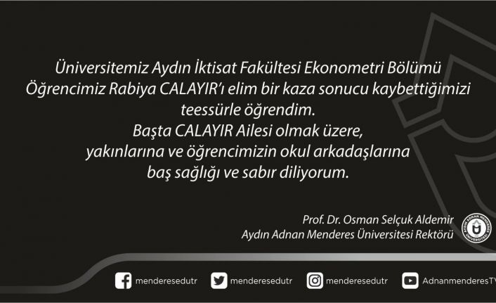 Aydın’ın Efeler ilçesinde gece saatlerinde trenin çarpması sonucu hayatını kaybeden Adnan Menderes Üniversitesi (ADÜ) öğrencisi Rabiya Calayır’ın (23) ölümü ADÜ’yü yasa boğdu.