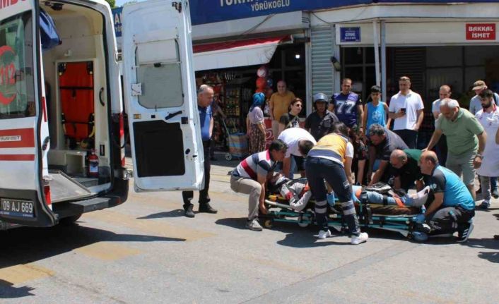 Aydın’ın Efeler ilçesinde kavşak içindeki refüje çarpıp savrulan motosikletin sürücüsü yaralandı.