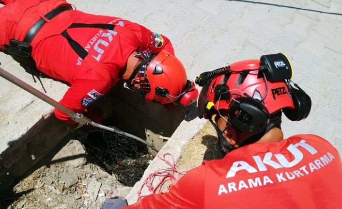 Aydın’ın Kuşadası ilçesinde rögara düşen yavru kedi Kuşadası AKUT ekibi tarafından kurtarıldı.