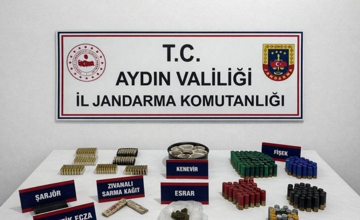 Aydın İl Jandarma Komutanlığı Kuşadası İlçe Jandarma Komutanlığı ekiplerince uyuşturucu kullanımı ve ticaretine yönelik çalışma gerçekleştirildi. Edinilen bilgiye göre yapılan çalışmalar neticesinde E.K. (57) isimli şahsın, ikametinde uyuşturucu bulundurduğu tespit edildi. Harekete geçen jandarma ekipleri, narkotik köpeği eşliğinde evde arama gerçekleştirdi. Yapılan aramalarda 8 adet ekili kenevir bitkisi, 350 adet tabanca fişeği, 179 adet av tüfeği fişeği, 25 gram kubar esrar, 3 adet içime hazır sarılmış sigara, 14 adet sentetik ecza hap, 2 adet zıvanalı sarma kağıt ve 1 adet tabanca şarjörü ele geçirildi. Gözaltına alınan şüpheli hakkında adli işlem başlatılırken, şahıs ifadesinin alınmasının ardından serbest bırakıldı.