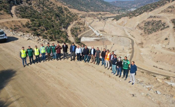 Aydın’ın Söke ilçesinde Devlet Su İşleri tarafından yapılan Sarıçay Barajı’nda inşaat çalışmaları tüm hızıyla devam ederken DSİ Genel Müdür Yardımcısı Dinçer Aydoğan ve beraberindeki heyet inşaat alanında incelemelerde bulundu.