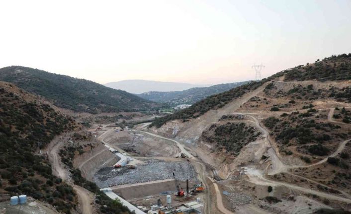 Aydın’ın Söke ilçesinde Devlet Su İşleri tarafından yapılan Sarıçay Barajı’nda inşaat çalışmaları tüm hızıyla devam ediyor.