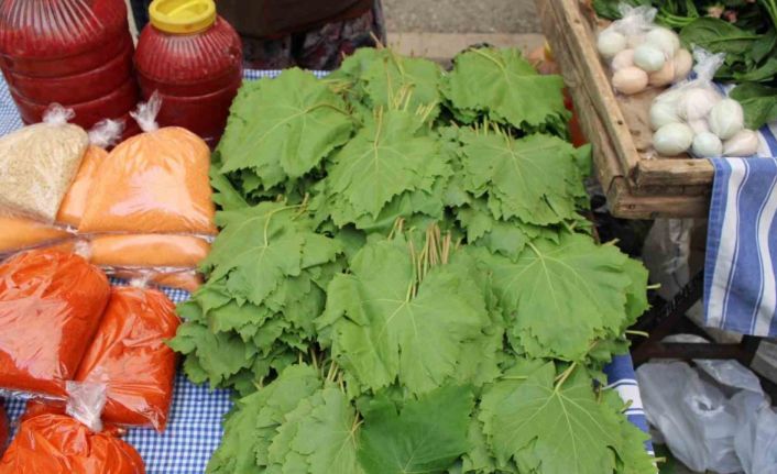 Türk mutfağının sevilen yemeklerinden sarmanın ham maddesi olan asma yaprakları pazar tezgahlarında yerini aldı.