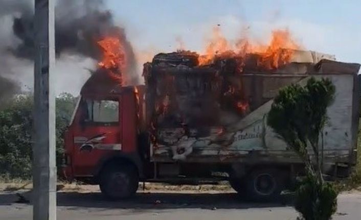 Aydın’ın Efeler ilçesinde seyir halindeki kamyonun kasasında çıkan yangında, kamyon kullanılamaz hale geldi.