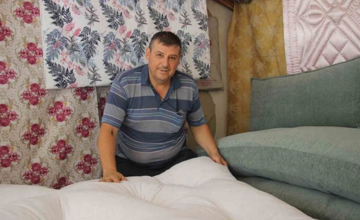 Pamuk yatak ve yorganların ağırlığının insanları zorladığını belirten Zeytindalı, "Artık pamukları az kullanıp aynı elyaf yorgan gibi daha ince yorganlar dikiyoruz. Yatakların üzerine şilte yapıyoruz. Sünger ile teması kesmek için, kaldırıp koyması daha kolay olsun diye böyle ürünler hazırlıyoruz. Pamuk yatak yorganı ağır olduğu için tercih etmediklerinden dolayı bunu inceltip o şekilde yapıyoruz. Bu tarz ince dikimler, yatakların üzerine koyup yatmak için daha rahat ve sağlıklı. Normal kullanmak için de ince yatak yapabiliriz, daha çabuk basılır. Basılsa da her şeyden daha sağlıklı olduğu için buna değer bence. Çekyatlar da olsa oturma grupları da olsa hepsi sünger. Onların üzerlerine de sünger ile teması kesmek ve yatmak için kullanmak için yapılıyor" ifadelerini kullandı.