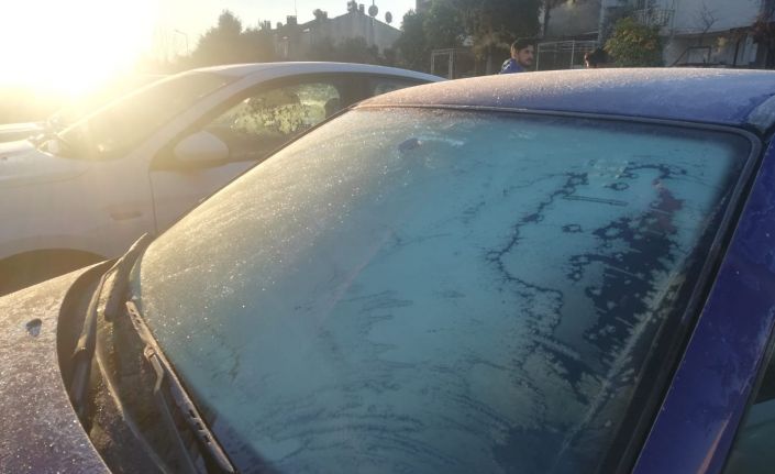 Aydın’da gece saatlerinde sıcaklık değerlerinin sıfırın altına düşmesi ile araçların camları buz tuttu, kırağı oluştu, sabah işlerine gitmek isteyen vatandaşlar araçların camlarındaki buzların çözülmesi için uğraştı.