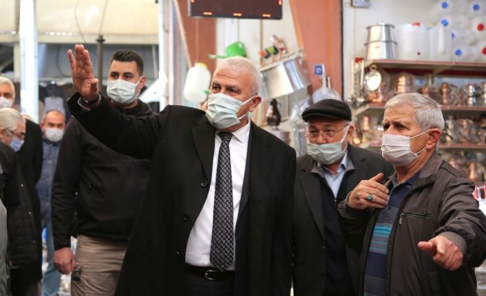 Hasanefendi Ramazan Paşa Mahallesi’ndeki Sobacılar Çarşısı’nda incelemelerde bulunan Başkan Atay, çarşı esnafının taleplerini dinledi. Atay, çarşının üstünde kullanılan çadırların oluşturduğu görüntü kirliliğini ortadan kaldırmak ve olumsuz hava koşullarından etkilenen vatandaşların mağduriyetine son vermek için, ilgili birim müdürlerine çarşının üst kısmının tente ile kapatılması talimatını verdi.