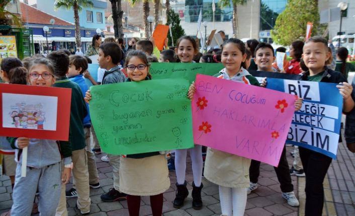 Söke’de çocuk belediye meydanında düzenledikleri etkinlikte haklarını haykırdı. 20 Kasım’da kutlanacak olan Dünya Çocuk Hakları Günü kapsamında etkinlik gerçekleştiren etkinlikte Sökeli öğrenciler, meydanda bulunan büyüklerine haklarının yazılı olduğu kokart dağıtarak dikkat çekti.