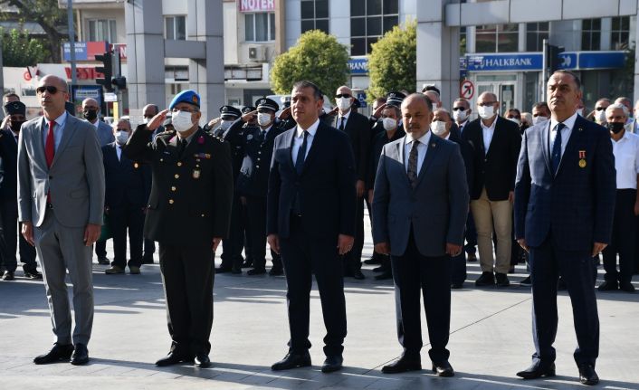 Tören, Atatürk anıtına çelenk sunumu ile başladı. Anıta Kaymakamlık, Garnizon Komutanlığı, Söke Belediyesi ve Söke Şehit Aileleri ve Gazileri Derneği çelenkleri sunuldu.