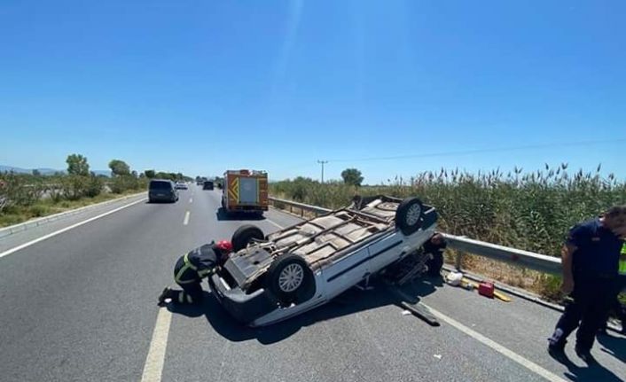 Edinilen bilgiye göre; Söke’den Didim istikametine seyir halinde olan Hasan A. yönetimindeki 06 AB 1450 plakalı otomobil sürücüsünün direksiyon hakimiyetini kaybetmesi sonucu refüje çarparak takla attı. Ters dönen araca çevredeki vatandaşlar ve olay yerine gelen Aydın Büyükşehir Belediyesi Söke İtfaiye ekipleri müdahale etti. Araç içinden çıkarılan sürücü Hasan A. kazada hafif şekilde yaralandı. Kaza ile ilgili soruşturma sürüyor.