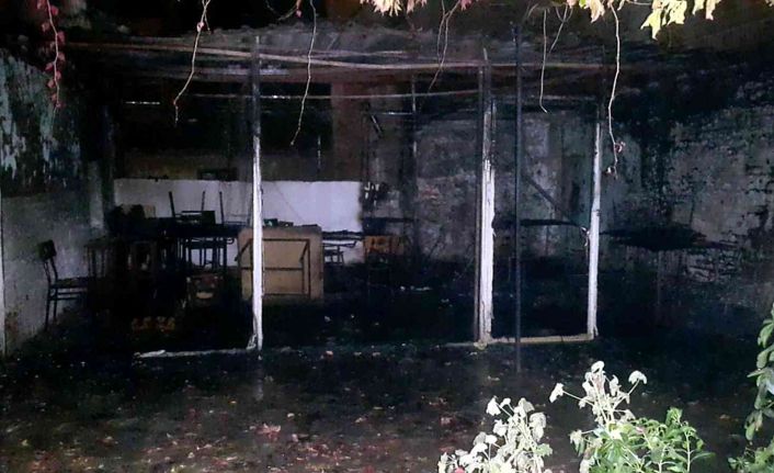 Söke’deki yangında çay ocağının bahçesi yandı