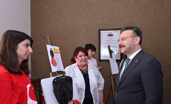 Geri dönüşüm malzemelerini değerlendiren öğrenci Nisa Nur Aksoy, eğitimci Havva Zeybek rehberliğinde şemsiye kumaşından ‘Şems’ adını verdiği etek ve crop bluz deniz pareosu yaptı. Çocuk Gelişimi bölümü öğrencisi Beren Kılıç ise eğitimci Emine Dinçsoy rehberliğinde, yaklaşık bin adet düğmeyi değerlendirerek ‘İnci Küpeli Kız’ adını verdiği tabloyu ortaya çıkardı.