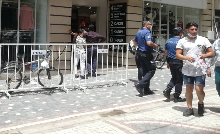 Aydın’da polis ekipleri sosyal mesafeye uyulması konusunda anonsla vatandaşları uyarırken, banka ve PTT gibi kuruluşların önlerinde barikatlı önlem alıyor. Önceki gün Efeler Yağcılariçi Çarşısı’nda bulunan bir giyim mağazası önünde oluşan sosyal mesafesiz kuyrukta vatandaşların çocukları ile birlikte iç içe vaziyette bulunması tepkiye yol açmıştı. Konunun gündeme getirilmesinin ardından Aydın İl Emniyet Müdürlüğü ekipleri mağaza önünde sosyal mesafeyi korumak için barikat kurarken, firma yetkilileri de vatandaşların sosyal mesafeye dikkat etmeleri için uyarı notları yerleştirdi.