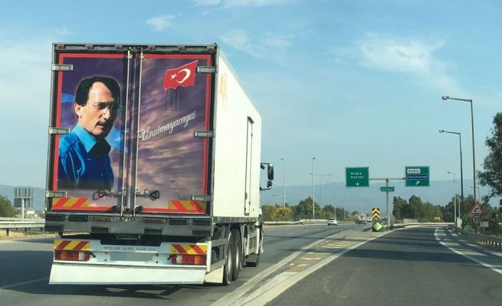 Aydın-İzmir Otobanı üzerinde bir tırın arkasında sıra dışı kişiliği ile ’süper vali’ olarak tanınan merhum vali Recep Yazıcıoğlu’nun fotoğrafını görenler duygulanırken, cep telefonlarının kameraları ile tırı görüntüledi.