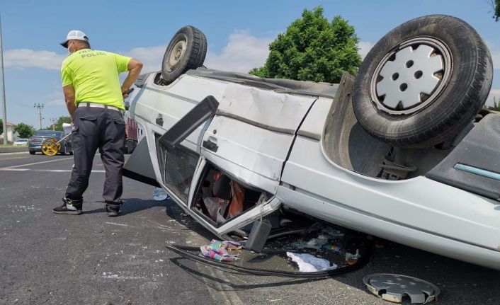 Aydın’ın Nazilli ilçesinde seyir halindeki otomobil takla atarak karşı şeride geçerken, kazada bir kişi yaralandı.