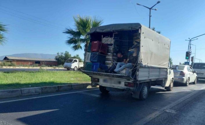 Aydın-Denizli karayolu üzerinde içi taşıyan pek çok araçta işçilerin adeta kuş tüyü döşekte gibi plastik kasaların üzerinde uyku çekmesi objektiflere yansırken, tarım işçiliğinin zorluğunu da gözler önüne seriyor.