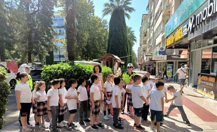 AYDIN (İHA) - TRAFİKTE YAYA ÖNCELİĞİ BİLİNCİNİN OLUŞTURULMASI HEDEFİYLE DÜZENLENEN ‘YAYA ÖNCELİĞİ FARKINDALIK’ ETKİNLİĞİNDE, TRAFİK POLİSLERİ ÖĞRENCİLER İLE BİRLİKTE YAYA ÖNCELİĞİNE DİKKAT ÇEKTİ.